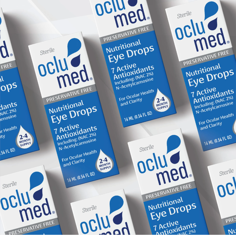 此外,诸如“2-4 个月供应量”徽章等标注以及 N-乙酰肌肽等关键成分的提及增强了产品的可信度和感知价值。通过注重清晰度和可访问性,我们创建了一个不仅外观精美而且满足 OcluMed 客户实际需求的包装。